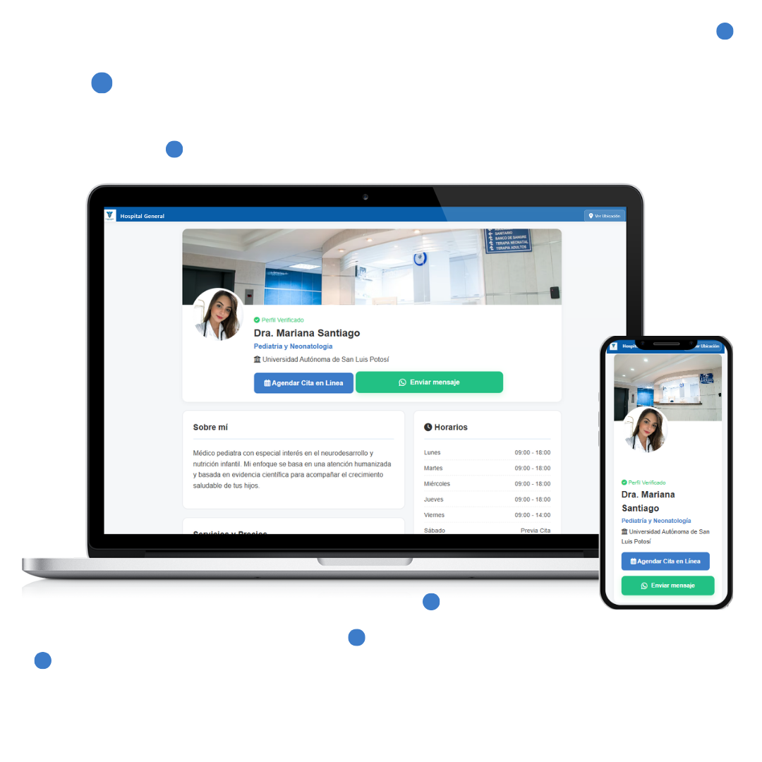 Facilita tu presentacion para tus pacientes y aumenta tus citas con la versatilidad de tener un consultorio físico y en línea en un solo sistema.